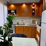 Eine voll ausgestattete Küche mit einer Kaffee-/Teemaschine, einem Kühlschrank und Küchenutensilien gehört zur Ausstattung dieses Apartments für Selbstversorger. Die Bushaltestelle Antigonidon befindet sich in der Nähe vom The Heart Of Thessaloniki Apartment entfernt.